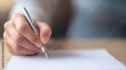 Hand guiding a pen on a paper ballot, emphasizing the act of manual voting, showcasing the tactile engagement and personal responsibility in democratic participation