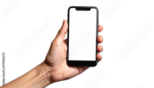 hand, holding, smartphone, blank, black, white, screen, isolated, background, portrait, mobile, phone, device, technology, communication, display, digital, modern, contraption, electronic, touch screen, presentation, template, interface, app, application, user, life events, design, style, cellular, connectivity, wireless, cyberspace, network, online, palm, finger, thumb, view, object, closeup, single, dark, studio, shot