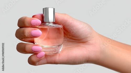 hand, holding, bottle, perfume, clear, silver, cap, pink, beauty, female, long, nail, woman, fashion, white, background, glasses, fragrance, cosmetic, scent, aroma, luxury, elegance, glamour, spray, liquid, fragrant, smell, care, fresh, young, closeup, product, lady, natural, isolated, person, cologne, container, femininity, gift, aromatherapy, manicure, style, aromatic, transparent, spa, floral, freshness