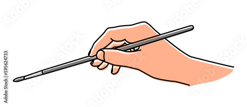 Hand holding a brush hand drawn with thin line. Teaching painting, professional artist, art school student concept. Png clipart isolated on transparent background