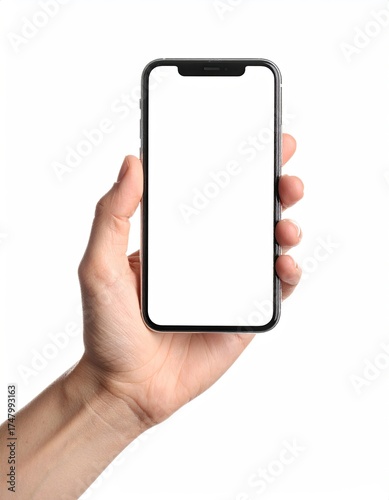 phone, hand, mobile, screen, blank, grey, vertical, rectangular, device, technology, digital, communication, touch, display, smartphone, modern, holding, hand-held, isolated, white, background, image, closeup, portable, contraption, connectivity, wireless, contemporary, electronic