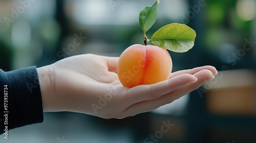 nectarine, hand, holding, smooth, colours, detail, fresh, closeup, background, inviting, warm, vibrant, surface, grip, natural, elegant, cosy, sharpened, clean