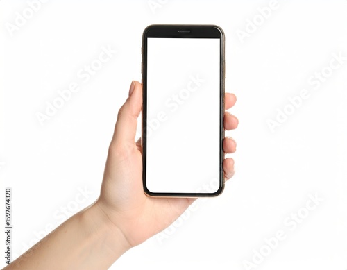 hand, smartphone, blank, screen, holding, phone, device, mobile, touch screen, display, image, white, background, isolated, hand-held, vertical, modern, technology, contraption, communication, empty, portrait, digital, product, closeup