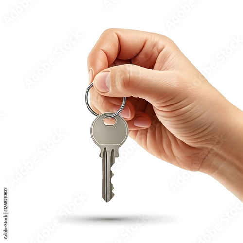 hand, key, door, security, lock, unlocking, access, home, safety, white background