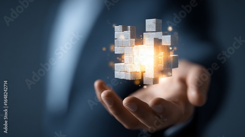 hand, cube, construct, floating, bright, center, light, holding, blurred, suit, background, business, concept, technology, innovation, future, solution, idea, creative, connection, digital, network, datum, information, abstract, structure, design, modern, geometric, shape, sparkle, glow, block, integration, assembly, system, complex, artificial, intelligence, engineering, management, professional, development, growth, strategy, vision, success, challenge, potential