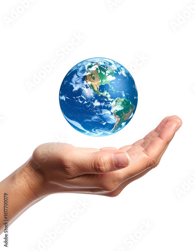 Hand Holding Floating Earth, Isolated on Transparent Background