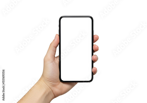 Hand Holding Phone With White Blank Screen Isolated On Background
