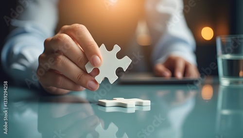 Hand Holding Puzzle Piece in Business Strategy and Decision-Making