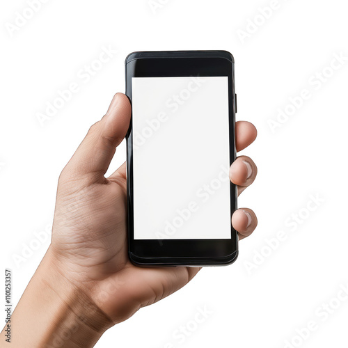 Hand holding smartphone with blank white screen for copy space