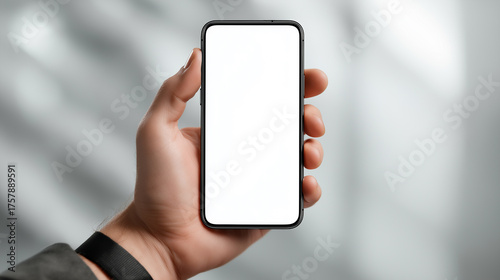 hand, smartphone, screen, blank, template, mobile, phone, device, technology, communication, cyberspace, digital, display, touch, modern, electronic, portable, wireless, connection, application, app, interface, user, design, business, work, office, person, man