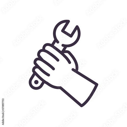 hand, holding, wrench, line, style, icon, vector, construction, working, maintenance, workshop, repairing, progress, labor, industrial, reconstruction, signs, work, professional, illustration, equipment, occupation, recover, rebuilding, element, system, replace, restoration, employment, installing