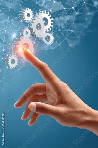 technology, innovation, gear, futuristic, hand, digital, network, interact, interaction, blue, background, virtual, connection, system, interface, touch, progress, industrial, conceptual, engineering, abstract, future, machine, development, human, mechanism, cyber, design, optimization, automation, connectivity, electronic, science, interactive, control, datum, operation, advanced, cyberspace, element, lighting, concept, mechanical, modernity, business
