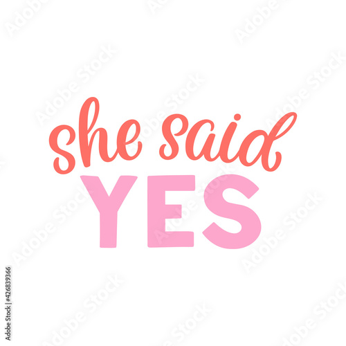Hand lettered quote. The inscription: she said yes.Perfect design for greeting cards, posters, T-shirts, banners, print invitations.