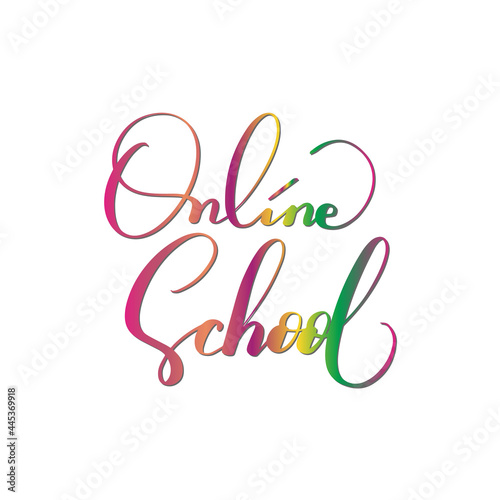 Hand Lettering Online School. Hand Drawn Vector Lettering. Modern Calligraphy. Online School concept. Creative design For Logo, Web, Banner, Poster, print.