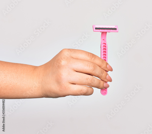 accessory, adult, arm, background, beauty, body, care, caucasian, clean, closeup, concept, cut, cut-out, depilation, disposable, female, finger, finger, hair, hand, health, holding, human, hygiene, image, isolated, object, 1, person, photo, pink, plastic, razor, shave, shaver, shower, showing, skin, spa, studio, tool, wall, wellness, white, woman, young