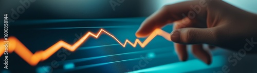 Hand on Glowing Stock Chart, Financial Analysis, Investment