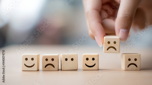 satisfaction, service, evaluation, assessment, review, survey, opinion, unhappy, displeased, discontent, feedback, rating, ranking, emotion, expression, face, symbol, wooden, cube, block, hand, placing, choice, decision, selection, indicator, measure, performance, quality, improvement, change, management, business, marketing, research, analysis, datum, statistic, result, progress, development, growth, strategy, planning, solution, problem