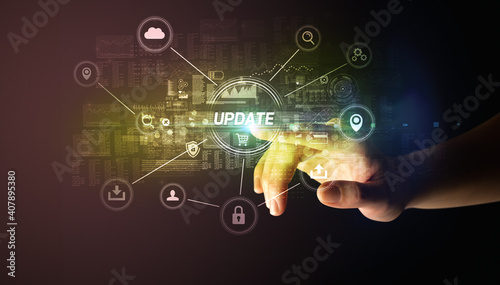 Hand touching UPDATE inscription, Cybersecurity concept