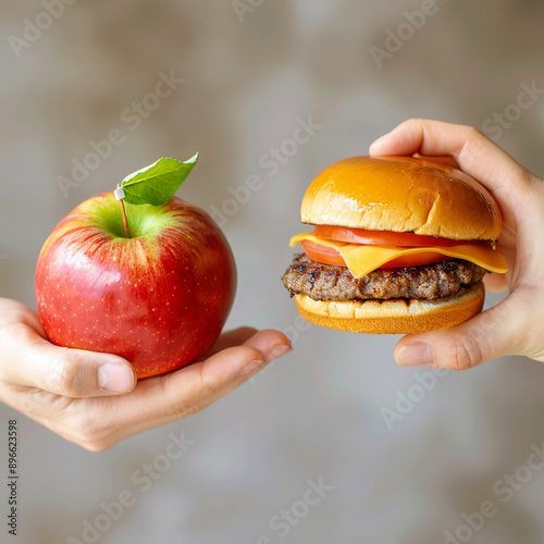 hamburger, burger, food, cheeseburger, cheese, sandwich, beef, bread, meat, isolated, lettuce, fast, bun, white, tomatoes, meal, lunch, apple, dinner, snack, object, unhealthy, hand, sesame, eating