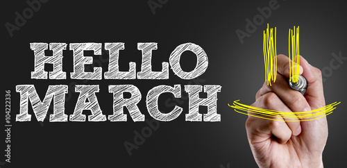 Hand writing the text: Hello March