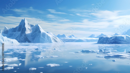 Hand-drawn beautiful illustration of iceberg scenery on the Arctic sea
