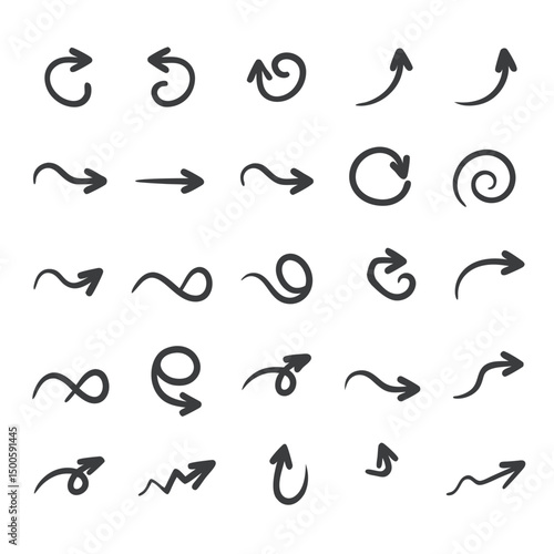 Hand-Drawn Curly Arrow Icon Vector Set.
