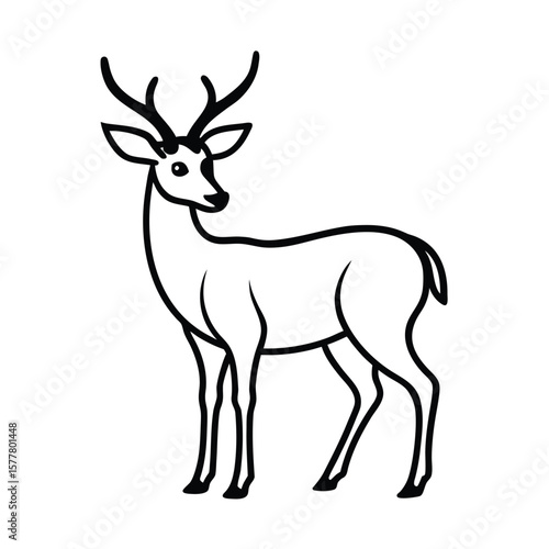 Handdrawn Deer with Antlers Standing on animal wildlife