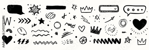 Hand-Drawn Highlight & Underline Vector Set: Scribble Arrows, Hearts, Speech Bubbles � Marker Stroke Doodles