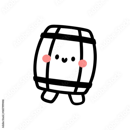 Hand-drawn kawaii Barrel character in doodle style with happy face