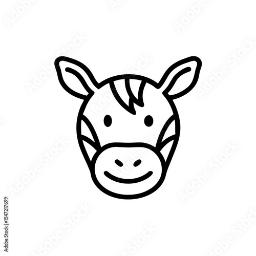zebra, head, animal, cartoon, cute, line, art, hand-drawn, drawing, graphic, design, icon, symbol, logotype, stripes, wildlife, safari, africa, mammal, face, happy, smile, simple, minimalist, vector, outline