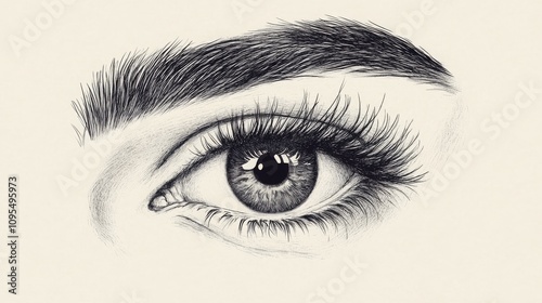 Hand-drawn luxurious eye illustration with eyebrows and lashes for business card design