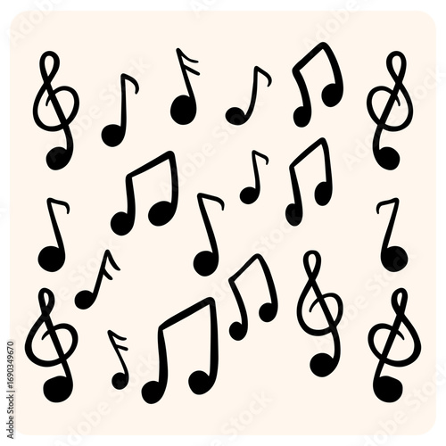 Hand-Drawn Musical Notes and Symbols