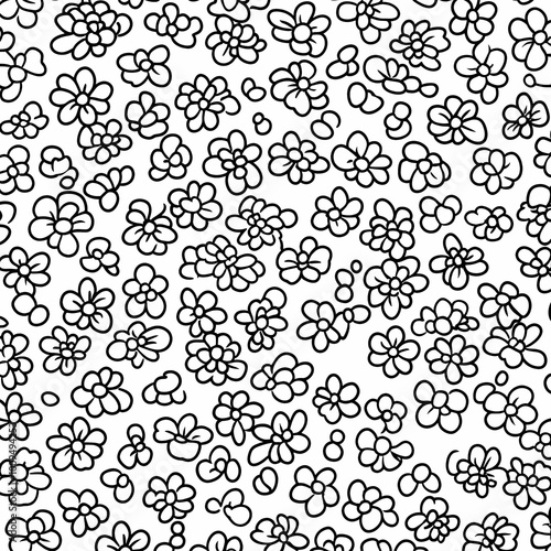 Hand-Drawn Nature Pattern with Butterflies and Flowers
