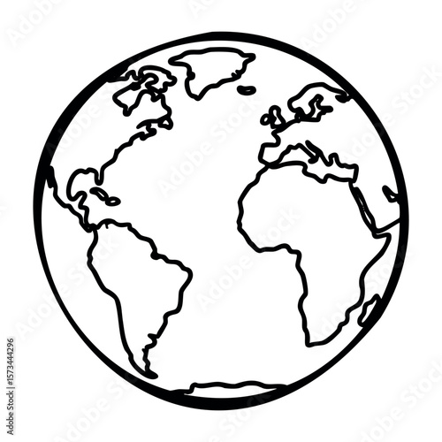 Hand-drawn outline of earth showing continents north and south america, europe, africa. Vector hand-drawn doodle illustration