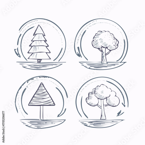 Hand-Drawn Tree Illustrations Four Unique Nature Designs