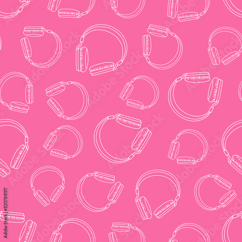 Handheld headphones. Seamless pattern.Doodle sketch style. Line drawing simple headphone icon. Vector illustration.