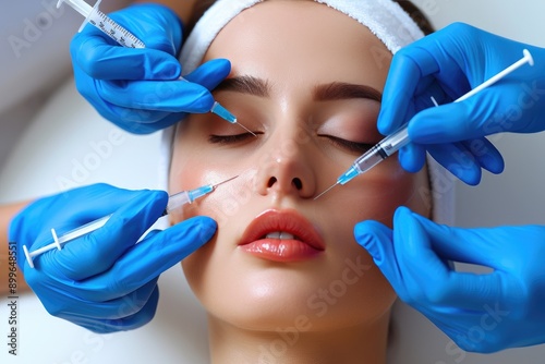 facial, woman, syringe, hand, glove, skincare, beauty, treatment, cosmetic, injection, health care, procedure, clinic, spa, rejuvenation, aesthetic, dermatology, therapy, closeup, medicals, sharpened, depth, effect, white, background, relaxation, smooth, skin, wellness, portrait, closeup, clean