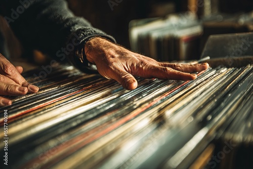 record, vinyl, hand, music, album, stack, collection, entertainment, audio, retro, vintage, media, sound, culture, lifestyle, browsing, searching, collecting, nostalgia, aged, melodic, song, disc, popular, information, passion, hobby, listening, groove, turntable, sleeve, man, closeup, texture
