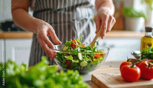 salad, glass bowl, mixing, fresh, greener, vegetable, healthy, diet, kitchen, cooking, food preparation, hand, action, motion, mixing bowl, lettuce, tomatoes, cucumber, colourful, vibrant, vegan, vegetarian, natural light, food photography, healthy lifestyle, meal, home cooking, receipe, lunch, dinner, culinary, wholesome, raw food, crisp, alimentary, health food, light meal, healthy eating