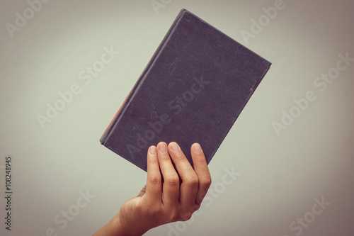 hands holding old book with filter effect retro vintage style