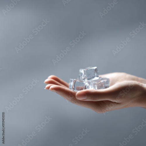 Hands holding transparent CO2 cubes, carbon emissions and climate policy concept, minimal grey studio background