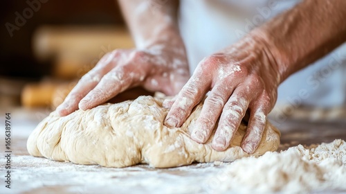 kneading, dough, hand, flour, bread, baking, cooking, kitchen, food, chef, preparation, table, wooden, rustic, receipe, ingredient, oven, pastry, deliciously, delicious, wholesome, healthy, homemade, rise, gluten, yeast, warm, mixing, shaping, tender, soft, gold, crispy, crust, crusty, loaf, artisan, sourdough