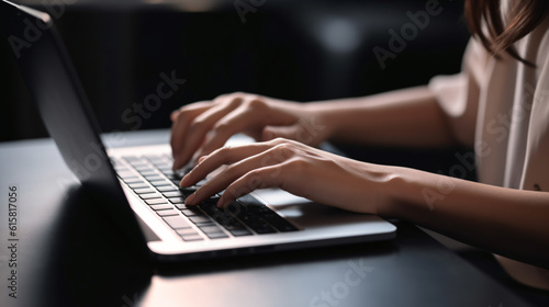 Hands of a young woman typing on a laptop keyboard, made with generative AI