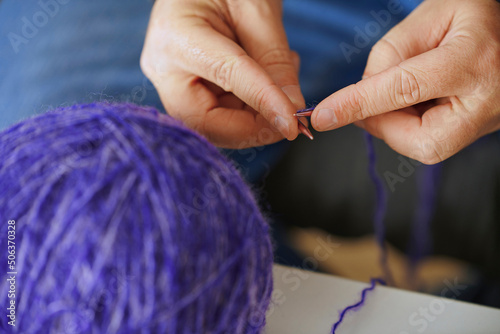 hand, man, knit up, purple, wool, 1, people, adult, needle, sewing, item, closeup, hobby, accuracy, ball, human, finger, producing, creativity, mid, holding, caucasian, colours, lifestyle, skill, craft, preparation, sex, male