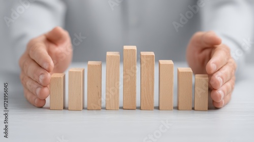 Hands Presenting Wooden Blocks Representing a Growth Chart and Success in Business, Finance, and Marketing Strategies with Light Background