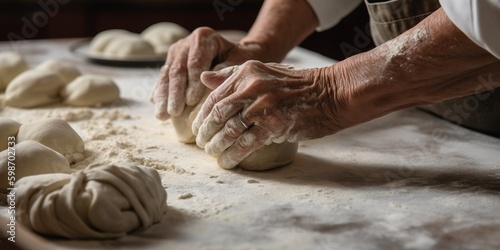 Hands roll out freshly made dough to create homemade pasta, following a time-honored family recipe, concept of Traditional cooking techniques, created with Generative AI technology Generative AI