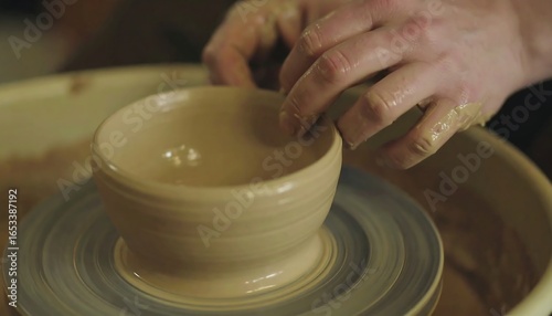 hand, clay, bowl, pottery, wheel, shaping, creating, artisan, craft, smooth, light, beige, wet, hand-made, artistic, studio, sharpened, detail, process, warm, circular, texture, skill, work, ceramic, brown, craftsmanship, creation, motion, skilled, effort, art, closeup, design, technique, artist