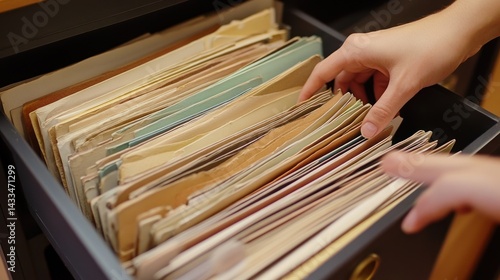 archival, document, file, paper, record, storage, organizing, sorting, vintage, drawer, cabinet, office, workspace, folder, paperwork, archive, historical, antique, retro, hand, hand, closeup, detail, collection, research, investigation, old, library, museum, paper, stack, arrangement