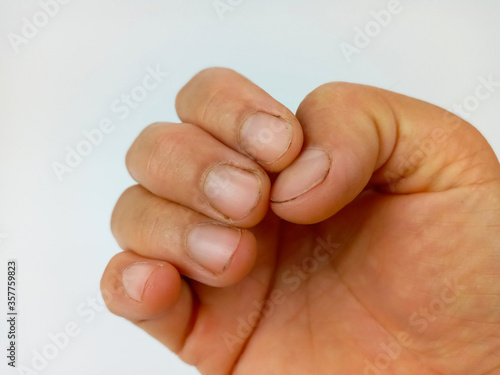 Hands with nail dirt isolated on white background.