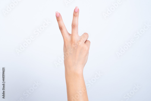 beautiful, 2, 2, second, loser, winner, contest, race, victory, signs, v, couple, hand, female, girl, woman, woman, arm, gel, acrylic, nail, nail art, natural, gesture, point, finger, finger, advertisement, advertisement, advertising, marketing, index, symbol, skin, wrist, gesticulate, show, showing, isolated, white, young, cut-out, present, gesticulation, arm